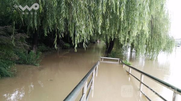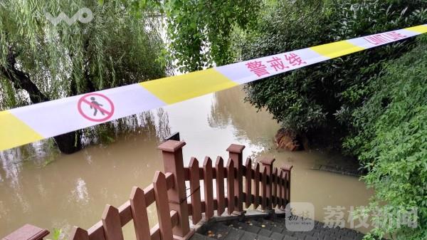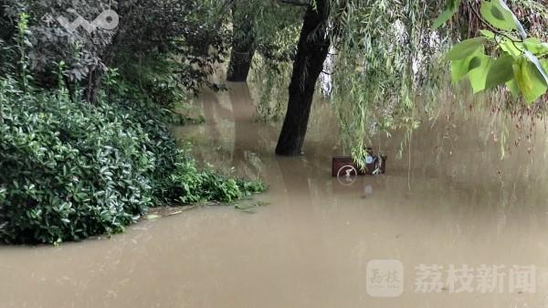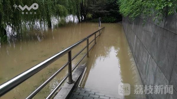 又到梅雨季节了,几场大雨一下,南京不少路面都积水了,7月3日中午,荔枝新闻网友来到了秦淮河水西门到赛虹桥段,原来的沿河绿道已经全部淹没在水里了,之前游船可以直接从桥下驶过的,今天,水面已经漫得超过了桥洞,所有能下到绿道的通道都拉上了警戒线,也有热心的路人站在边上提醒好奇想去绿道观望的市民“为了安全,不要往下走了”。