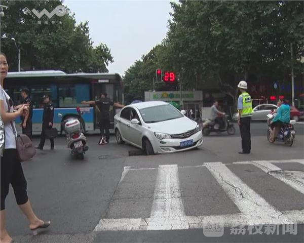 今天(7月3日)白天雨水短暂停歇,路面积水退去,不过雨水留下的“后遗症”也显露出来。这不,今天中午12点多,在南京中央路与许府巷路口,路面突然塌陷,把一辆私家车也陷了进去。