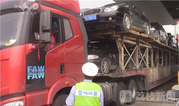 民警驾驶警车跟随货车4公里后在苏鲁省界收费站将该车拦下,驾驶员陆某连忙解释称自己的车辆高温不敢开快,民警再三询问后,驾驶员才说出了实情。