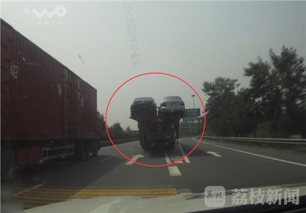 7月3日下午1点钟,徐州交警高速七大队民警巡逻至京沪高速上行K716公里处时,发现前方一辆运输商品车的大货车行驶缓慢,尽管民警一直在其后用扩音器喊话,货车依旧以50码左右的速度占用行车道和应急车道行驶,非常危险。货车时不时还走“S”形路线,巡逻民警为了防止追尾事故,驾驶警车跟在货车后面闪警灯做提醒。