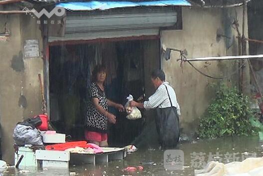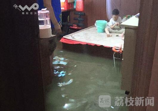 今天(7月4日)早上,扬州六圩社区住在京杭运河边多处居民家受淹严重,有的住户小孩、大人只能蹲在床上等待救援。荔枝新闻记者早上冒着大雨来到京杭路,由于连日下雨和江水涨潮,京杭运河的水已经漫到岸边,多家居住在运河边的居民家里受淹。记者看到有几户居民家里水还稍微浅一点,有的住户最深的已经到了膝盖部位,走进一间卧室看见,水位还有20厘米左右就淹到床上,大人只能陪着儿童坐在床上。
