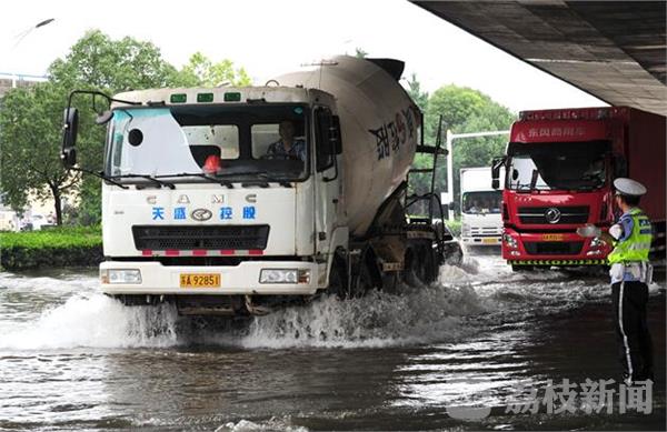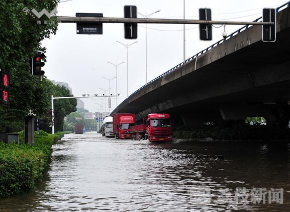 受南秦淮河水倒灌影响,从今早(7月5日)开始,南京凤台南路双向交通拥堵。警方对应天高架等进入凤台南路的多个入口进行了封闭并全力疏导,同时提醒驾车人请避开凤台南路。今天中午11点多,记者来到凤台南路,道路依然处于封闭状况,交警仍在现场指挥车辆绕行。道路上的排水井口打开,正在排水。