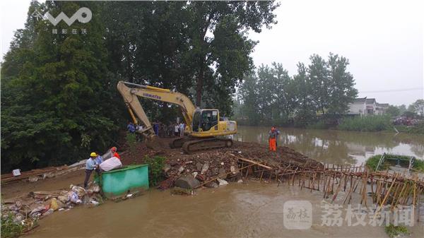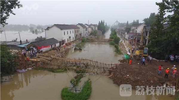 7月5日下午14时,扬州仪征市新集村和天安村交接处决堤,决口长约30米,决堤后,新集镇有2个村、680户、2710人受灾,受灾面积约4300亩。险情发生后,受灾群众已紧急撤离,救援人员用钢筋进行打桩,用渣土车运送填埋缺口。