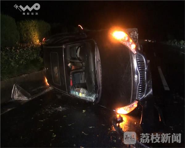 7月7日凌晨2点30分左右,G204国道盐城市大丰区刘庄镇南3公里处发生一起交通事故,一辆由南向北的轿车由于速度过快雨天路踩了个刹车,轿车立即失控一头撞到路中间的水泥隔离栏,车子当场侧翻在超车道上,车内一家三口逃过一劫无大碍,事故发生后驾驶员立即报警,110接到报警后迅速赶到事故现场进行勘查和调查事故原因。