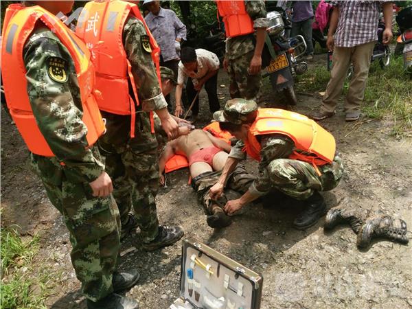 今天清晨,扬州六圩永顺村附近江堤大坝发现漏洞情况,当地干部群众立即组织抢修,同时武警官兵也赶来增援抢修,目前大坝漏洞还没有找到,抢修工作还在进行中。荔枝新闻记者中午来到大坝时,一名武警官兵在参加抢修时出现中暑晕倒,武警队医立即组织处置。