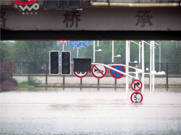当日傍晚,笔者来到南京绕城公路启迪大道互通口如同“海面”,看到本来繁忙的每个匝道口,成了一条条“河流”,交织一起,就连通往启迪大道方向的涵洞也已全部被水淹没。交通信号灯、标志杆、路灯杆也淹没其中。标志牌上显示5米,估计积水有5-6米深。仔细观察,绕城公路桥下方,有一辆车泡在水中,只露一车顶在外,道路通行受阻。现场拉起安全警戒线,一民警坚定阵地,防止车辆行人闯入。据了解,被淹成这样,是因今天特大暴雨突袭,造成绕城公路启迪大道互通,成“互通河流”,影响正常通行。