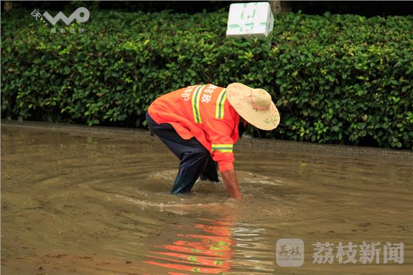 今天上午,笔者来到建邺区虹苑新寓附近的应天高架下,看到一条秦淮河支流无名河河水不断哗哗漫堤而出,流向路面,防汛人员奋不顾身,十几个人冲上前去,紧急把运来的沙子装进白色蛇皮袋,然后在桥栏杆和绿花带周围围起1米的防洪墙,终于挡住洪水漫堤;在河岸边东侧的一个中转站院内,洪水又喷涌而出,防汛人员又紧急赶到中专站院内拉上安全隔离警绳进行围堵,现场看到河水不断地从大门口哗哗流出,好在排水系统通畅,水刚流出全部进入下水道没有造成道路积水。经过防汛人员五六个小时紧张抢险战,秦淮河水位也终于缓慢开始减退,防汛抢险这才松了一口气,他们辛苦努力没有白费,保住了人民生命财产的安全。