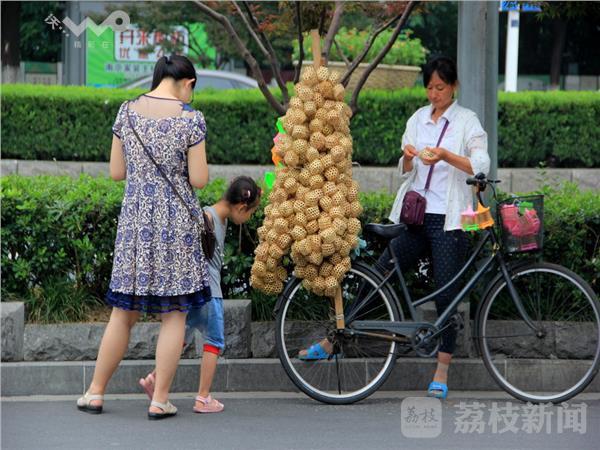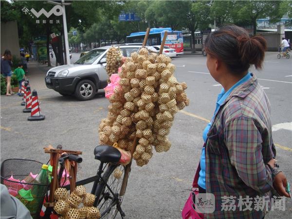 今天(7月11日)上午,在南京大街小巷的马路上,10几位宿迁村姑推着自行车,自行车上挂着一大堆蝈蝈笼子,在街头叫卖,蝈蝈动听悦耳的“咝咝咝”畅快叫声,吸引了不少路人的目光。