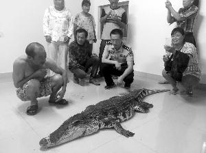 “这么大的鳄鱼,会不会是国家保护动物呢?”李春鸣立即报警。特庸镇派出所社区警务队长唐于勇赶到李春鸣家中,拍下鳄鱼的照片、视频,寻找相关专家辨别。“如果是国家一、二类野生保护动物,必须立即营救。” 唐于勇说。