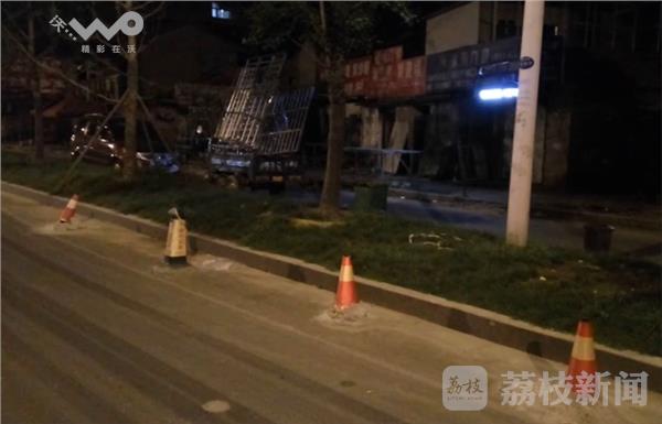 荔枝新闻网友在该路段找到了这几个被厚厚的水泥给固定住的三角锥桶,据附近居民透露,由于很多轿车和货车经常停在这里,商铺店门口被挡住影响生意,因此商家自己设了这些路牌。
