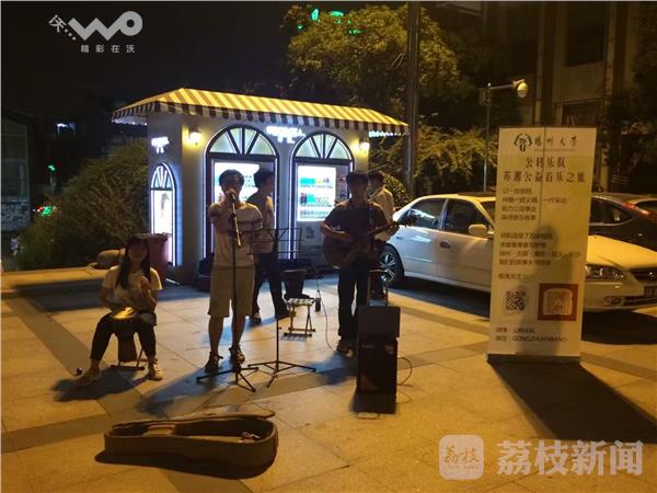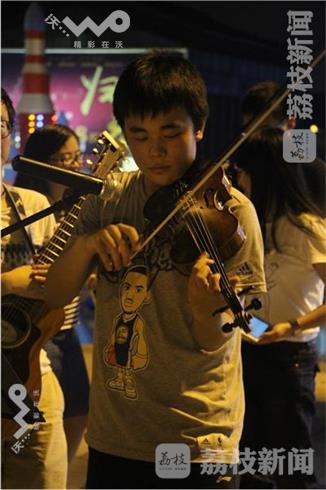 傍晚七点左右,受“尼伯特”的影响,云压的很低,天空阴沉沉的,预示着一场大雨来临。但是不利的天气并没有阻挡他们的热情,他们一行四人背着吉他、小提琴、非洲手鼓、摄像机,拖着沉重的音响,拎着话筒架走在学校东门,搭乘近一个小时的公交车赶往目的地。许蕴韬告诉记者:“为了挑选合适的表演场地,我们绕着整个广场走了几圈,最后终于找到了一处空地。”设备刚组装到一半,就被保安“请”走了。最终,他们和一家饮品店商议,在不影响经营的情况下在店门口开始了他们的首演。