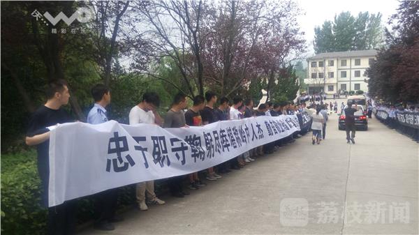 11点左右,远处响起了一声喇叭,“来了,来了”,随着运送遗体车队的逐渐靠近,所有人压抑已久的情绪在此刻释放,大家一遍一遍地叫着范飞的名字,所有的不舍与痛心都凝结在这一声声呐喊中。 灵车缓缓驶到分局门口,一队身着正装的民警迈着坚实的步伐走到车前,从灵车上接过范飞的遗像,拥着挚爱的战友“回家”。