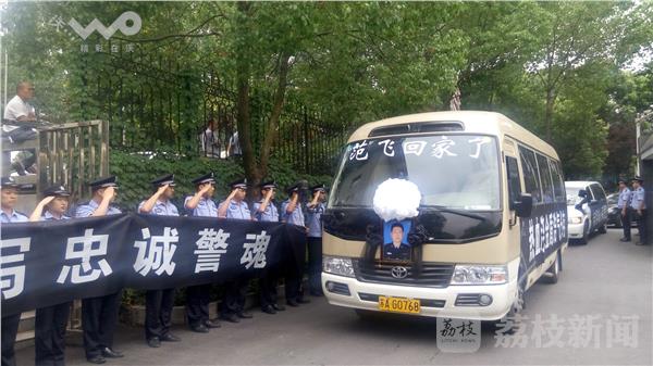 在得知了范飞因公殉职的消息后,分局党委连夜召开会议。会上,分局领导饱含深情地说,“我们不能让我们的好民警一人孤零零在外地,我们要让范飞回家。”随即安排车辆7月16日接范飞回家。浦口当地群众得知该消息后,一大早自发赶到分局,站在道路两边。人群中一片静默,所有人都怀着悲痛的心情等待范飞“回家”。