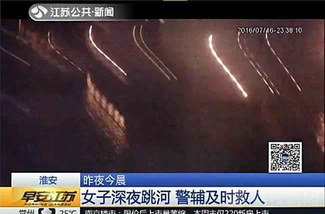 昨天(7月16日)深夜11点半,淮安涟水县坦克桥上,一名女子突然跳河自杀。正在巡逻的警辅章师傅赶到后,立即跳入10米深河水中,将女子成功救上了岸。