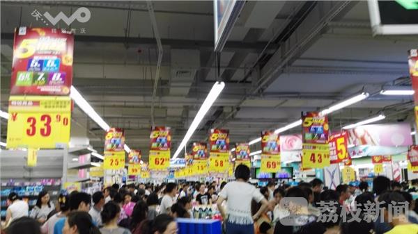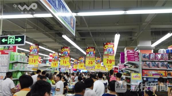 2016年07月17日,总部在南京的某超市迎来了成立20周年的日子,从7月15日至17日,该超市连锁店进行全场货品6至7折的优惠活动,这一优惠让众多购物者涌入超市,疯抢货物,特别是日用品、食品等百姓常用的物品被疯狂抢购。昨天17日是优惠的最后一天,据售货员表示,从早上开门到晚上关门,无时不刻的拥满了人,比高温天还热!这几天他们每天都要补几次货,但超市内依然不少货架是空荡荡的。有市民戏称,南京今天最热的地方就是此超市了。
