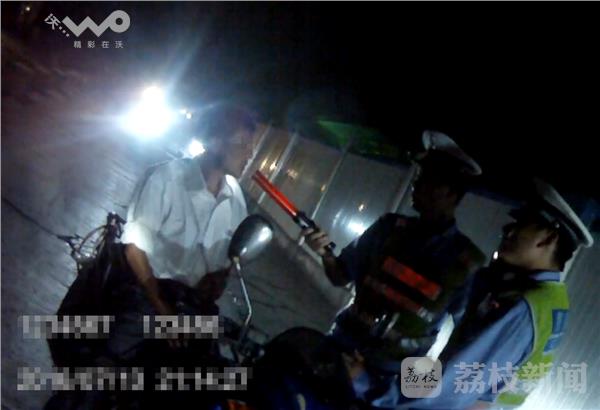 晚上9点多,交警在徐州秦虹桥治安卡口附近设卡查处酒驾,这名摩托车司机被拦下后,交警发现其满脸酒气,经过初步酒精检测后发现,男子有饮酒情况存在。