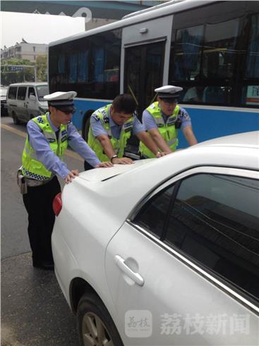 同日,交警六大队民警巡逻中发现一辆白色轿车停在建宁路快车道上,驾驶员满头大汗的坐在车里不知所措,经询问得知,因为大意没注意到油箱已空,结果刚出来行驶了一段路,车辆就趴窝了,民警遂与警辅一道把车推到不影响交通的地方等待救援。