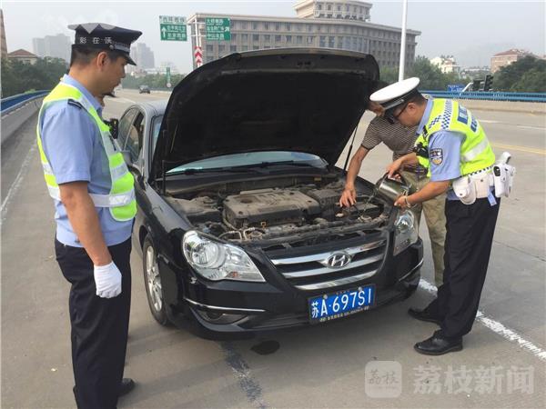 今天,7月18日,交通早高峰期间,南京大桥南路高架上一辆停滞不前的小轿车引起了交警六大队民警的注意,经询问是车辆水箱出现了裂口,水温过高。民警叮嘱驾驶员做好警示后,赶忙找来水壶帮他加水降温,车辆重新启动后,驾驶员对民警的及时援手,表示深深的感谢。