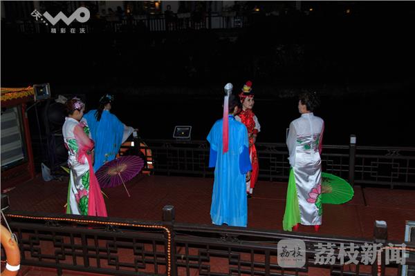 2016年7月18日晚8时许,笔者避暑纳凉到夫子庙赏夜景,夜晚的夫子庙古香古色灯光璀璨,天气虽然炎热,但仍挡不住游客的脚步,广场前人头攒动,大量游客聚集大照壁前的秦淮河畔,观看龙船上的歌女们优美的舞姿,一曲曲动人的《红楼梦》片段,凄美动人,悲凉哀婉,游客顿时陶醉在美妙的音乐歌舞声中,久久不愿离去。