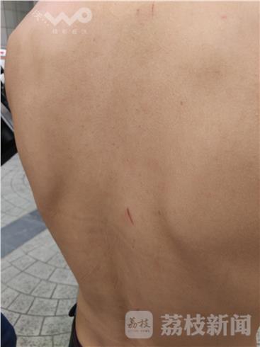 马女士表示,他用可以收缩三节的收缩棍,打我老公,我不知道一共打了多少下,但是我老公背上有明显的痕迹。