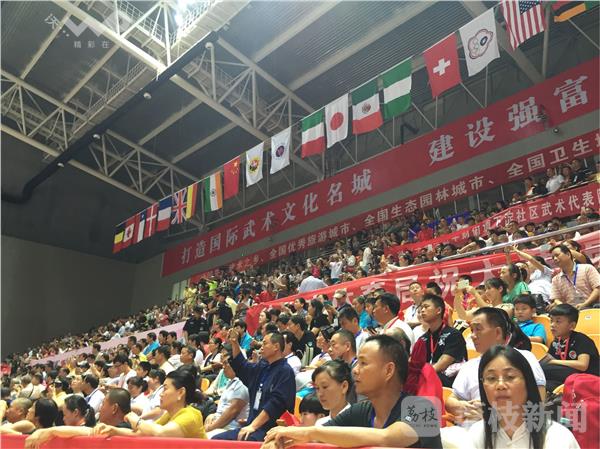参赛代表队中,除了本土选手外,还云集了来自德国、法国、印度、赞比亚等国家的武术爱好者,他们的动作一招一式透着十足的认真和韧劲,观众对于他们的表演也是回报以热烈的掌声。本次赛事设置有自选项目、国际竞赛规定项目、武术传统项目等比赛。参赛选手中不少是武术名家,比赛之外,对于武术的理解已经融入到了日常的生活当中。 武术精神在中国延绵传承,不少年轻人也在坚守,28岁的赵丹丹7岁习武,现在已经是华佗五禽戏的59代传承人,每年跟随她学习的学生人数多达四五万人。