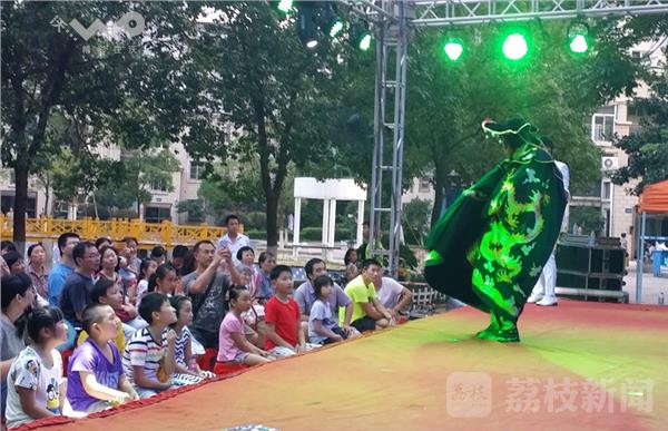 今晚(7月23日)6点半,随着夜幕的降临,一场主题为“浓浓邻里情,盛夏大欢聚'的大型纳凉晚会在南京秦淮区凯悦天琴花园小区举行。荔枝新闻网友看到:优美的歌舞、杂技、魔术等表演吸引了凯悦天琴花园小区及周边香格里拉、金陵尚府等小区的1000多名市民前来观看。 来自山东海尔集团彩生活演艺剧团与小区业主代表,以及小朋友们同台演出,演出内容健康向上、风趣而幽默。每个节目结束都报以热烈的掌声。 业主徐大爷说:“入住小区十年了,象这样的活动以前还不多见面。纳凉晚会使广大业主走出家门,欢聚在一起。希望今后小区能多举办类似活动,让邻里们能多交流多交心,以增进邻里间的和睦。”