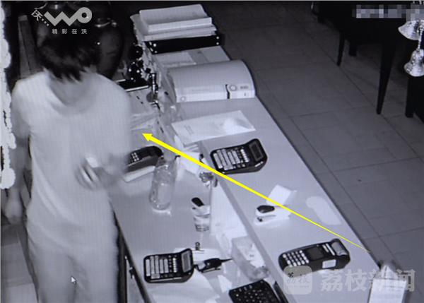 男子进入二楼后又迅速下到了一楼,找到吧台后,便开始实施盗窃,在盗窃的过程中,男子发现店铺内有监控,还特地将监控电源关闭,但此时监控已经清楚的记录下男子的举动。