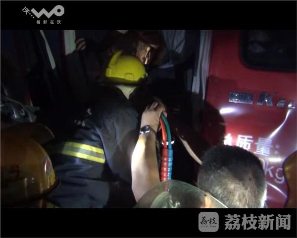 23日凌晨3点57分,丹阳市陵口镇一加油站附近发生一起惊险车祸,一辆大货车被另外一辆从加油站快速驶出的货车撞飞,所幸消防官兵及时赶到,将被困人员救出。事故发生在镇江312国道丹阳市陵口镇折柳段218公里处中国石油加油站附近,04时08分,丹阳导墅中队赶现场时发现,一辆满载货物的大货车撞上路上行驶的另一辆货车上,由于巨大的撞击力,被撞的货车被顶出十几米,车尾部受损。事故车辆车头严重变形,挡风玻璃破碎,货车驾驶室受撞击,驾驶员脚部被卡住,无法动弹。消防官兵立刻展开营救工作,首先利用液压扩张器对变形的车门进行破拆,因驾驶室内无合适位置用液压扩张器进行救援,指挥员下令消防车用牵引绳对变形车头进行拉拽,引导被困驾驶员脱困,并迅速将其送上120急救。