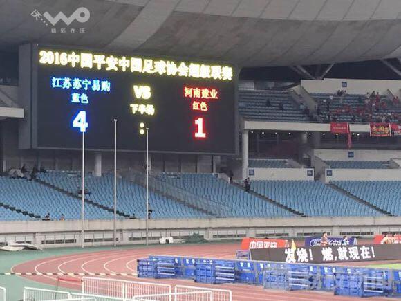比赛刚刚开始不到两分钟,建业获得机会,萨马尔季奇中场送出过顶球,伊沃突入禁区在防守队员干扰下一脚挑射,皮球稍稍高出横梁。第50分钟,苏宁打破僵局!苏宁前场左路断球,张晓彬直塞找到套上的张新林,张新林起球传中,马丁内斯力压防守队员头球攻门被吴龑神勇化解,特谢拉门前补射得手!苏宁1-0建业! 第62分钟,苏宁扩大领先优势!苏宁获得左侧角球,球传到禁区内,塞恩斯伯里后点头球摆渡,洪正好空中接力头球破门!苏宁2-0建业! 第68分钟,苏宁锁定胜局!苏宁右侧角球传入禁区,马丁内斯的头球打在萨马尔季奇的手臂上,主裁判判罚点球,马丁内斯亲自主罚一蹴而就!苏宁3-0建业! 第76分钟,苏宁再进一球!苏宁左路掷出界外球,马丁内斯中路分球给禁区右侧的吉翔,吉翔凌空抽射破门!苏宁4-0建业! 第79分钟,建业扳回一球!尹鸿博左路下底倒三角回传,钟晋宝后点低射破门!苏宁4-1建业! 第85分钟,冯卓毅在防守对方反击过程中铲倒特谢拉,两黄变一红被罚下场!