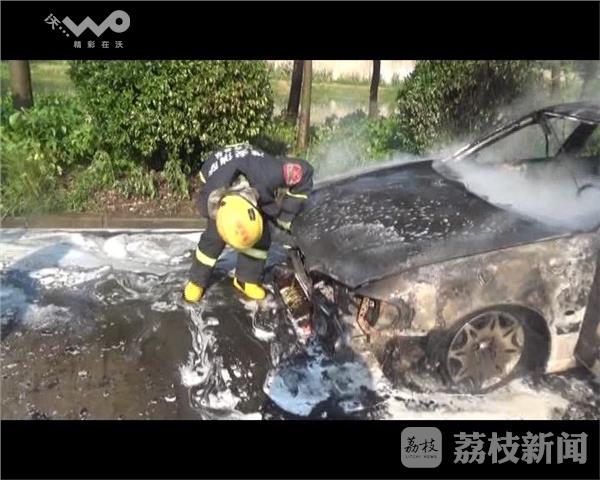 昨天早上7时30分许,江苏淮安市淮安区边寿民路一辆行驶中的轿车突发自燃,当地消防部门接到报警后,迅速赶赴火灾现场实施扑救。
