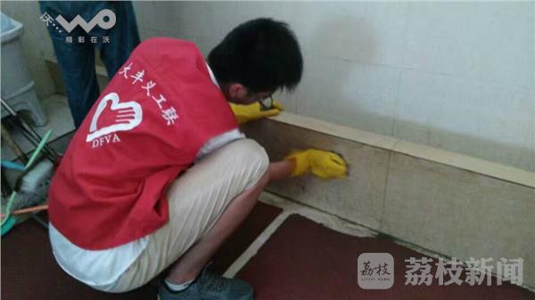 在打扫卫生的现场,义工们没有嫌弃厕所的异味,赶到现场的人都立即投入了劳动之中。大丰义工联的周旭才告诉记者,难能可贵的是两位参与劳动的大学生,他们蹲在地上反反复复擦洗异味最重的小便池,他们的认真、执着感动了不少义工和病人。周旭才说,两位大学生不怕脏不怕累,干事情踏踏实实,以后走上社会肯定是干好工作的“好料子”。据了解,大丰当天的最高温暖达到38.5度,经过一两个小时的劳动,几乎每个人的橡胶手套都能倒出汗水来。