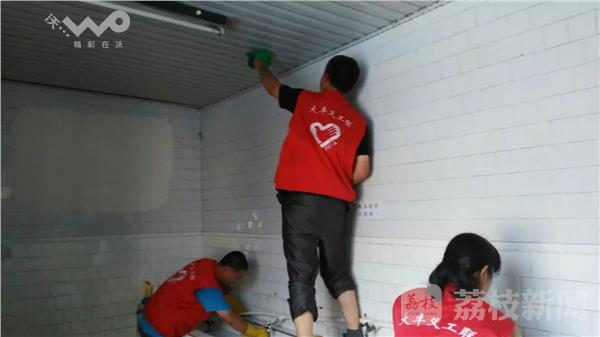 7月24日下午,盐城市大丰区义工联的近10位义工走进当地第二人民医院,为精神病患者清洁打扫厕所,这次义务劳动是上周日义工们带领精神病患者游览荷兰花海景区“陪伴行动”的延续。