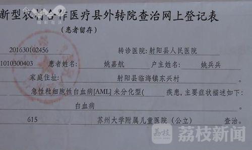 一个才十个月大的幼童,在今年的六月底、七月初,经射阳、盐城以及苏州的专业医院检查确诊,患上了急性骨髓性白血病,家人倾其所有进行治疗,但原本就不富裕的家庭已经很难筹出后续治疗的费用。7月24日下午,幼童的父亲姚兵兵给记者打来了求助电话,希望借助媒体的力量,能帮助他们筹集到部分后续治疗的费用,帮他们这个苦难的家庭度过难关。