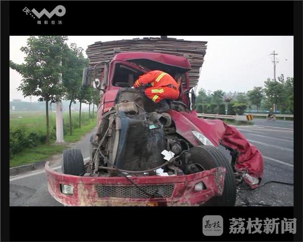 2016年7月25日凌晨4时43分许,淮安市淮阴区长江东路与237省道交叉口发生一起大货车追尾交通事故,有1名司机被困。淮阴区大队王营消防中队接到119调令后,迅速出动1车7人赶赴现场进行救援。