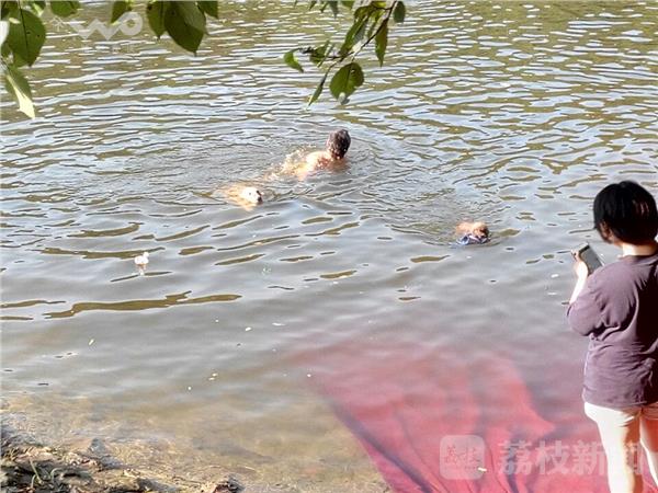 25日下午5点多,荔枝新闻网友在南京紫金山白马水库,看到前来戏水的市民络绎不绝,不算大的一片水面上,3条宠物狗正欢快地在水中扑腾。2名游泳的男子,挥舞着手中的空矿泉水瓶、拖鞋,然后扔向十余米外,指挥爱犬游过去携回。不一会儿的功夫,狗狗“呼哧呼哧”地就衔着水瓶回到主人身边,反反复复。