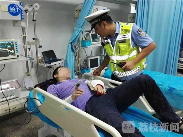 由于天气炎热,气温高达39度,地表温度更高,为防止受伤男子再被灼伤,刑侦局支援干部董襄江半蹲下托起男子,靠在自己腿上,并用找来的报纸为其扇风解暑。南京交警二大队三中队中队长李子龙及副中队长张堃也迅速赶赴现场。李子龙找来硬纸板固定男子受伤的手臂,防止骨折处移位加重伤情。张堃控制住事故电动车与当事人,联系好伤者家属。随后,现场民警协助将受伤男子送至四五四医院,保证了伤者的及时救治。