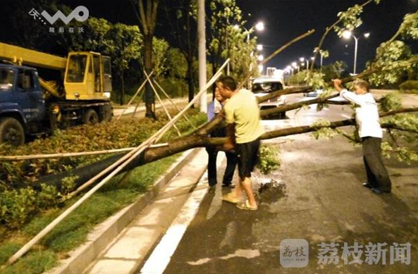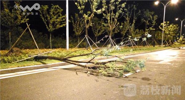 当晚淮安多个县区都发生树木倒伏现象,园林和电力抢修人员均已上路对安全隐患进行维修清除。