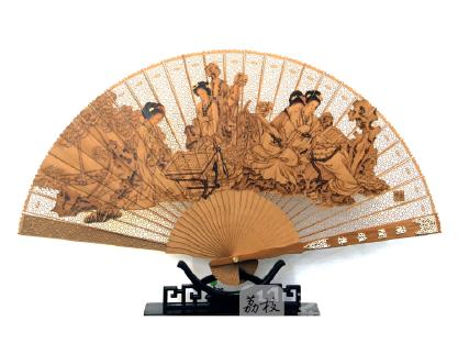 中国扇子文化源远流长,宣德年间,明代嘉靖年间出现杭扇、苏扇、宁扇、川扇、京扇等流派,其中苏州折扇的制作为最佳。在当时社会,文人们手拿一把折扇摇摇晃晃,是一件非常雅致的事情。而民间流传“坐轿子,摇扇子,荣华富贵一辈子。”的婚嫁习俗中,扇子更是作为一种吉祥和美好生活的象征。扇文化的发展也因为有一批制扇骨、扇面的能工巧匠,使折扇的社会地位得到极大提高。在这种社会氛围的推动下,苏州折扇的做工日趋精致,价格也越来越高。明人沈德符的《万历野获编》中记载到:“……往时名手有马勋、马福、刘永晖之属,其值数铢。近年则有沈少楼、柳玉台,价遂至一金。而蒋苏台,同时尤称绝技,一柄至值三四金。冶儿争购,如大骨董然,亦扇妖也。"从这段话我们可以看出一把名家的折扇扇骨在当时的价值为三至四两黄金。按现在的金价折算,约合人民币4至5万元。苏州檀香扇是从长期的折扇发展过程中逐渐衍变而来,以檀香木制扇虽然早已流传,但它成为一个独特的扇种,只有近百年历史。苏州是檀香扇发源地,细巧幽雅而精致玲珑的檀香扇,自上世纪初制作以来,以其独有的工艺特色,越来越受到国内外人士的宠爱。解放后1955年公私合营成立苏州檀香扇生产合作、折扇生产合作社。1958年10月改为苏州扇厂、苏州檀香扇厂。