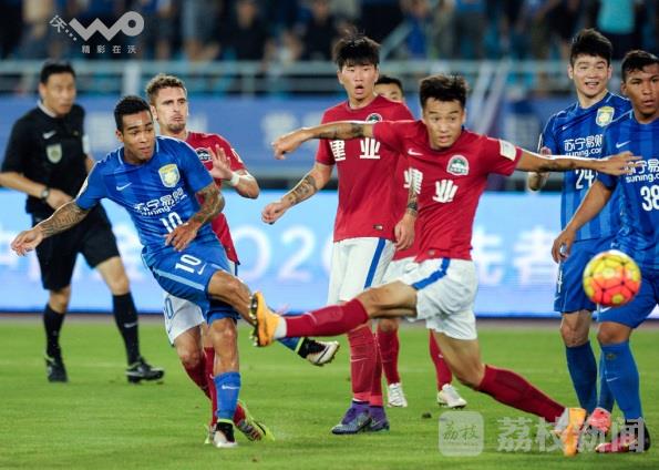 第40分钟,苏宁反击,特谢拉单兵突进到禁区内,脚后跟一磕,拉米雷斯跟上左脚射门被门将挡出。半场伤停补时第2分钟,伊沃左脚传中,龙成头球往禁区内摆渡,哈维尔插上抢射稍稍偏出。