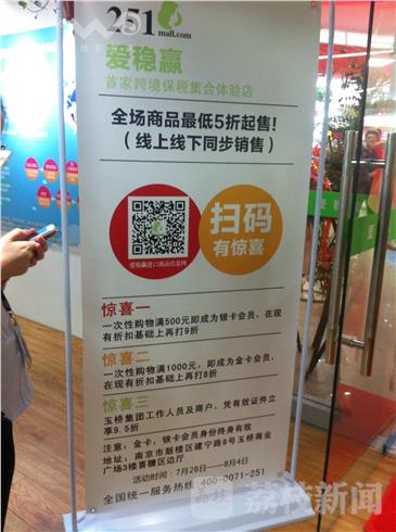 小荔枝在现场获悉,该体验店经销商251mall.com平台自去年进军南京市场以来,受到众多喜欢购买进口商品的市民追捧。南京自今年5月出台一系列跨境直邮的政策以来,不少商家纷纷推出了跨境直邮业务。与其他商家不同的是,该体验店除了提供进口的红酒、零食、日化等商品外,还专门设立了跨境直邮商品展示柜,消费者只要用本人身份证件注册平台会员,再用手机扫一扫二维码,直接拍下商品便可购买,整个购买过程中无需代购。在商品质量上,商品的产地、生产日期、市场价格等数据一一对应;在价格上由于省去报关及其他中间环节,也要便宜很多。据悉,这样的体验店今年在南京还要开设8到10家。