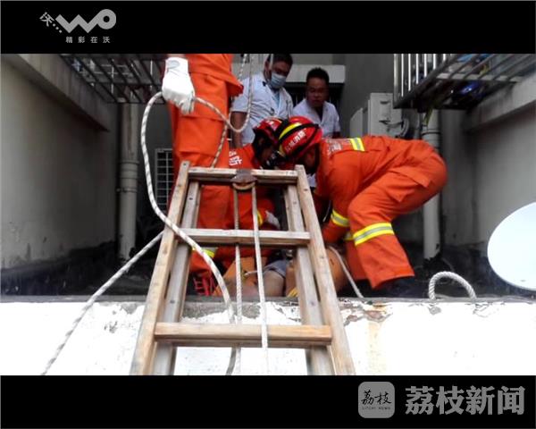 昨天(7月28日)下午5点左右,盐城市阜宁县向阳路一小区内,一名装修工人不慎从六楼坠落,摔到了二楼的平台上陷入昏迷。群众发现险情后,及时拨打了报警电话。接到报警后,当地公安、消防、医疗等部门紧急赶赴现场进行处置。消防队员立即架设梯子,几名战士迅速搭建救援通道,随后利用担架将该男子安全转移,送往医院抢救。据了解,事发当时该名工人正在六楼安装空调外机,不慎坠楼,目前该男子尚未脱离生命危险。由于近日持续高温,不排除男子中暑导致坠楼的可能。对此,警方提醒所有高空作业者:凡进入施工现场的所有人员,必须正确佩戴安全帽,系好安全带,扣好保险钩,以免意外发生。