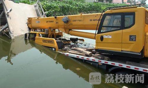 7月29日早上6点钟左右,一辆起重吊车在通过射阳县海河镇三河村村部北侧的一座东西走向桥梁时,整个桥面疑因不堪重负,突然垮塌,吊车掉入河中,所幸吊车司机动作敏捷,及时从驾驶室内爬了出来,事故没有造成人员伤亡。