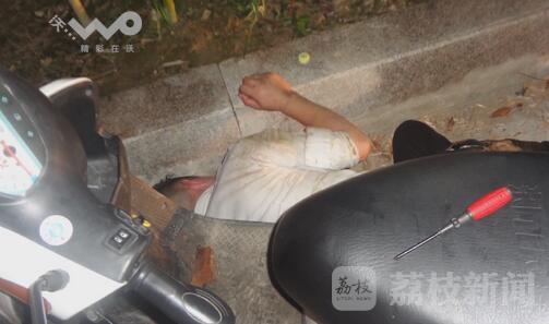 在7月27日晚,徐州王场派出所民警接到群众报警,称其电动车刚刚被盗。民警按照嫌疑人可能逃走的路线搜索,很快发现了意外的一幕。这名男子栽倒在报警人的电动车旁,已经昏睡不醒,民警喊了半天,一点反应没有。