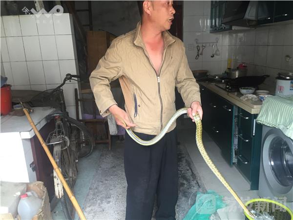 想到这个大院子里住了不少人,这蛇会不会咬人,会不会有毒,便立刻打电话求助。抓蛇的老师傅很快到达现场,经过查看发现蛇还在原地。老师傅没有费多少功夫就把蛇给抓起,放进随身携带的袋子中。抓蛇师傅讲,别看我这么轻松,那可是花了几十年功夫的。平常人想去抓,说不定被咬伤。经过检查,抓蛇师傅表示,这条1米长的蛇是条雌蛇,也是我们常说的家蛇,说不定旁边还有雄的。让住户小心点。据了解,苏州这里的蛇基本不咬人,但是也不能掉以轻心,一旦发现,要立即报警,请专业人士来抓。