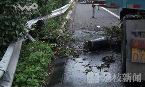 荔枝新闻通讯员赶到现场时,受伤的肇事货车驾驶员已被120救护车接送到医院救治,高速交警、路政、清障人员已经调来三辆起重吊车,正在指挥人员将肇事车辆调离车道。记者在现场看到,一辆满载轿车的超长货车头朝西横停在由北向南的车道里,三股机动车道和一股应急车道被占据,大量的车辆被积压,长达几公里之多,肇事货车的车头部分已经面目全非,保险杠脱落,驾驶室下方的左前轮不见踪影,机油泄漏一地,车头前方的护栏弯曲变形,车后路中央的十多米隔离护栏被撞毁,绿化树木被撞得东倒西歪。一名目击事故发生的大货车驾驶员刘师傅告诉记者,他行驶到该路段北侧时,就看到肇事货车突然撞毁护栏就冲了过来,他赶忙下车,用手电筒向后方车辆示意停车避让,防止发生二次碰撞事故,造成更大的人员伤亡和财产损失。正在指挥吊车的一名清障的工作人员告诉记者,他们现在先用吊车将肇事车辆调到路边,尽快恢复通行,然后再用警车开道,将肇事车辆拖下高速。