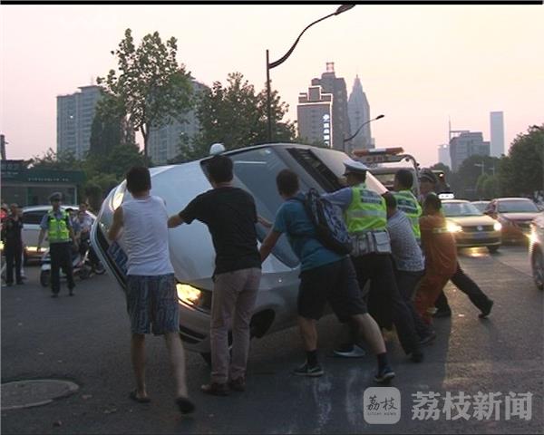 随后,交警与市民一起,合力将车辆反正,清障车将其拖离现场。目前,南京交警二大队正在对这起事故做进一步调查处理。
