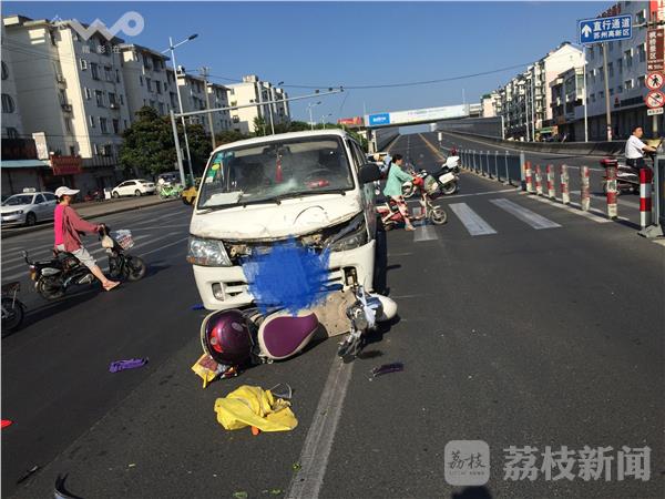 今天(7月31日)早上7点45左右,苏州金门路上发生一起车祸,一名男子骑电瓶车在斑马线附近被一辆从高架上驶下来的汽车撞上,人被撞飞出数米之外。据了解,当时电瓶车车主买完菜后,骑行电瓶车准备由北向南穿过金门路,电瓶车上装了米和菜。这时高架上一辆面包车由东向西从高架上飞快开下,等面包车司机看见电瓶车时为时已晚,当场把电瓶车撞飞,而电瓶车车主被撞飞后躺在地上一动不动。