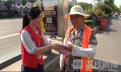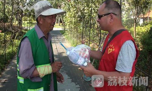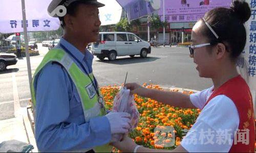 据了解,这次活动中,义工联一共准备了三百份清凉用品,组织二十几名义工兵分六路,将这些清凉用品送到坚守岗位的交警、环卫工人和公交车司机等手中。