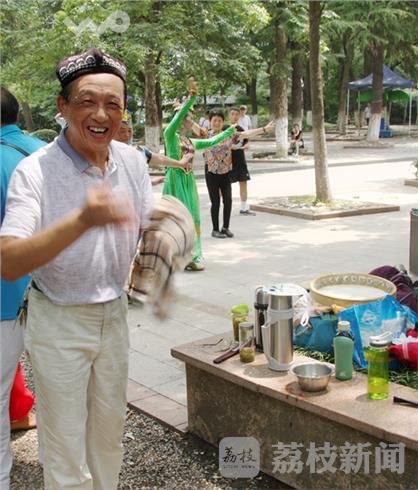 正在跳舞胡大爷告诉荔枝网友,:常在这跳舞的是一群当年参加过新疆支边的“知青”,最多时有近一百人。正值豆蔻年华时她们响应党的号召,告别南京、告别亲人前往遥远的新疆参加军垦,一去就是十年、数十年,许多人在那里结婚生子,与当地少数民族结下了深情厚谊。改革开放后,许多“知青”回到了南京,而有一些人则选择长期留在了边疆。近些年来,她们经常组团回到当年支边的戈壁滩,回忆当年战斗和生活的激情岁月。她们说:“新疆是我们的第二故乡,它令我们终身难忘。”因此,三年前在有人提议组团一起跳广场舞的时,大家便一拍即合。很快大家购买了服装、音响和手鼓,把舞跳了起来。考虑到大家家住分散,莫愁湖公园容易集中。因此,大家就把活动地点选择在这里,而且坚持每周三次,至今从未间断。