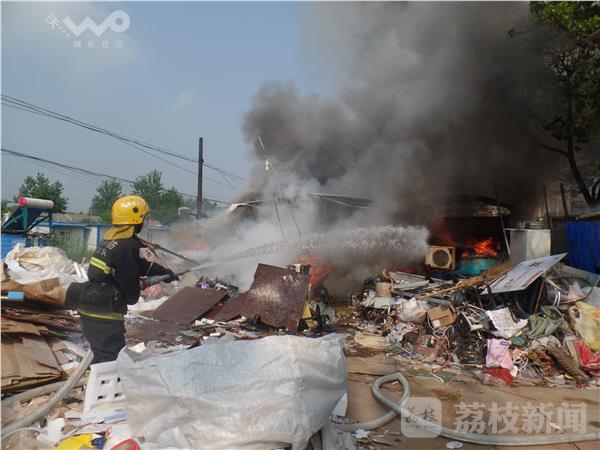昨天(7月31日)上午8点多,江苏省淮安市洪泽县东风路边上一废品回站突发大火,洪泽县消防中队官兵接警后迅速到场将火势扑灭。
